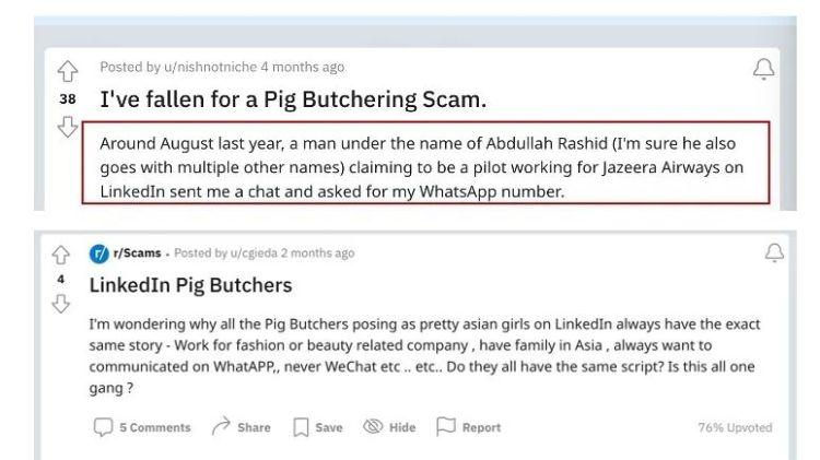 These cases aren't rare exceptions. CNBC recently attended an online meeting of LinkedIn scam victims, with losses ranging from $200,000 to $1.6 million. On Reddit, many users report similar "pig-butchering" experiences originating on LinkedIn.
