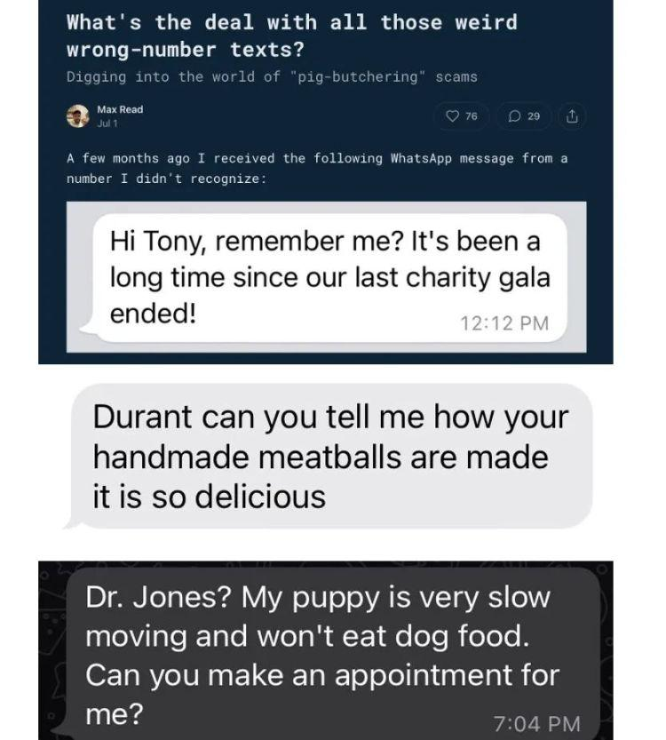 Many people have received strange messages from unknown numbers with various "wrong number" stories.